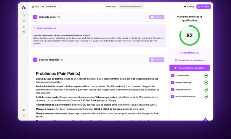 L’IA intégrée agit comme un partenaire de travail, pas comme un rédacteur automatique. Elle met en évidence les zones à renforcer, propose des reformulations pertinentes et s’appuie sur une base de données issue de pratiques commerciales éprouvées.