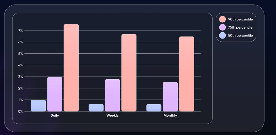 Les entreprises situées dans le 90e centile enregistrent une croissance mensuelle de leurs utilisateurs actifs de 6,5 %.